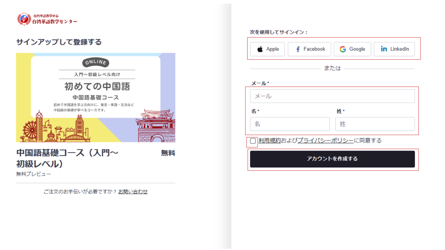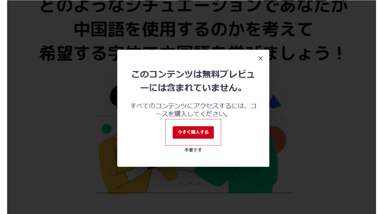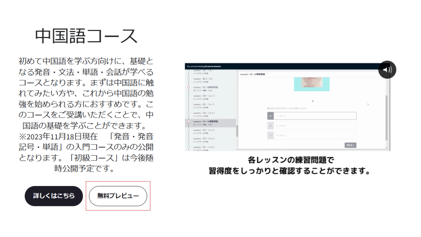 【中国語コース】ページ内にある【無料プレビュー】ボタンを押してください。