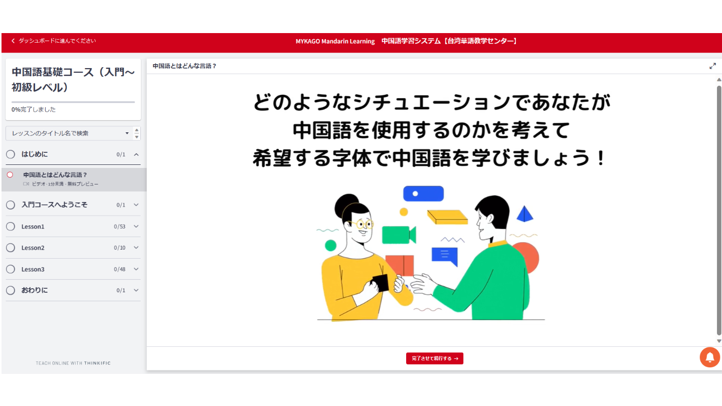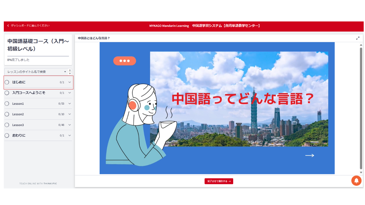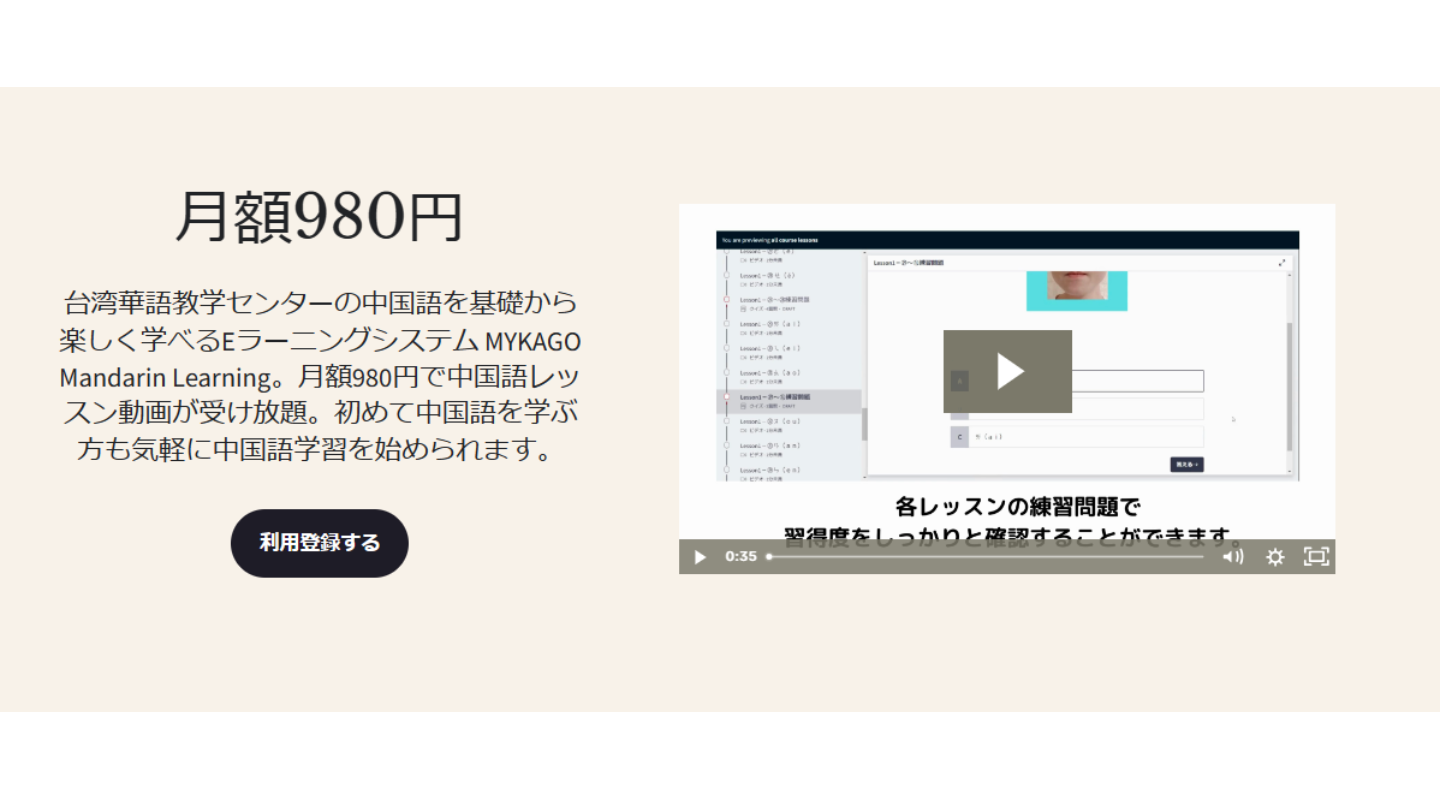【中国語コース】ページ内にある【無料プレビュー】ボタンを押してください。
