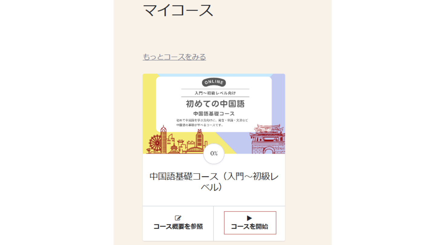 【マイコース】が表示されたら【▶コースを開始】ボタンをクリックしてください。