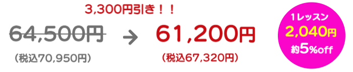 30回×50分 | 90日 | 2,040円 | 61,200円 (税込67,320円) |