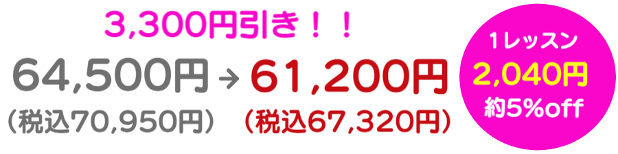 月に10回以上レッスンを受講される方なら約5%off!おまとめ購入がお得です!
