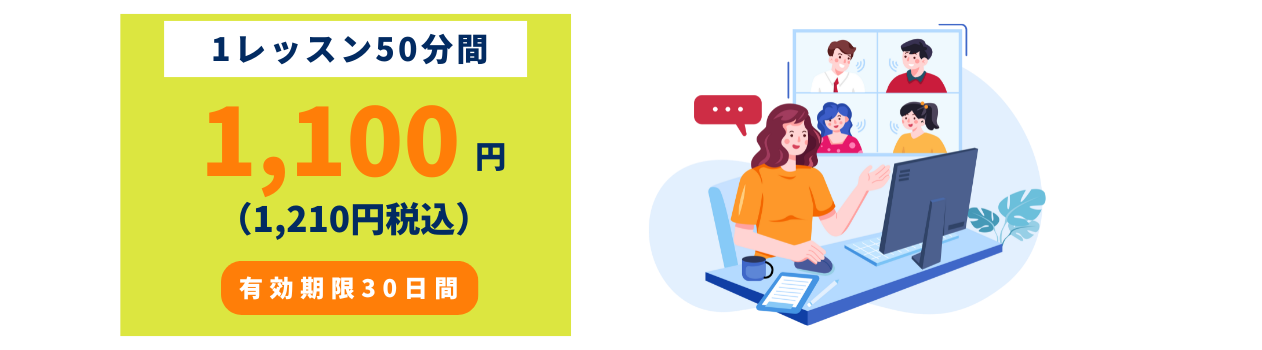 1回マンツーマンレッスン50分間 2,040円~(税込2,244円)(有効期限最大90日間)