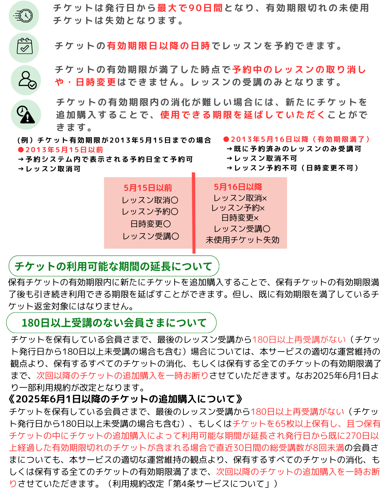 チケット枚数 | レッスン回数 | レッスン時間 | 有効期限 | 1レッスン単価 | 価格 |