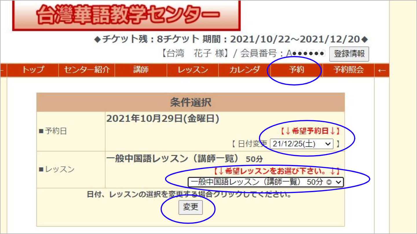 ④ご希望日時と希望条件を選び「変更」ボタンを押してください。