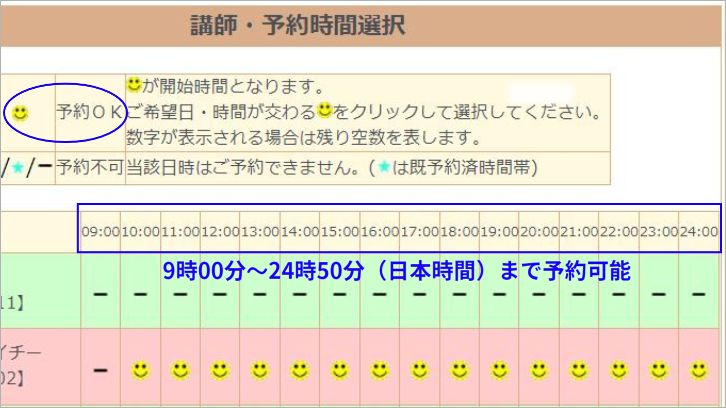 9時~24時50分までの時間帯で黄色のマークの表示はご予約可能です。