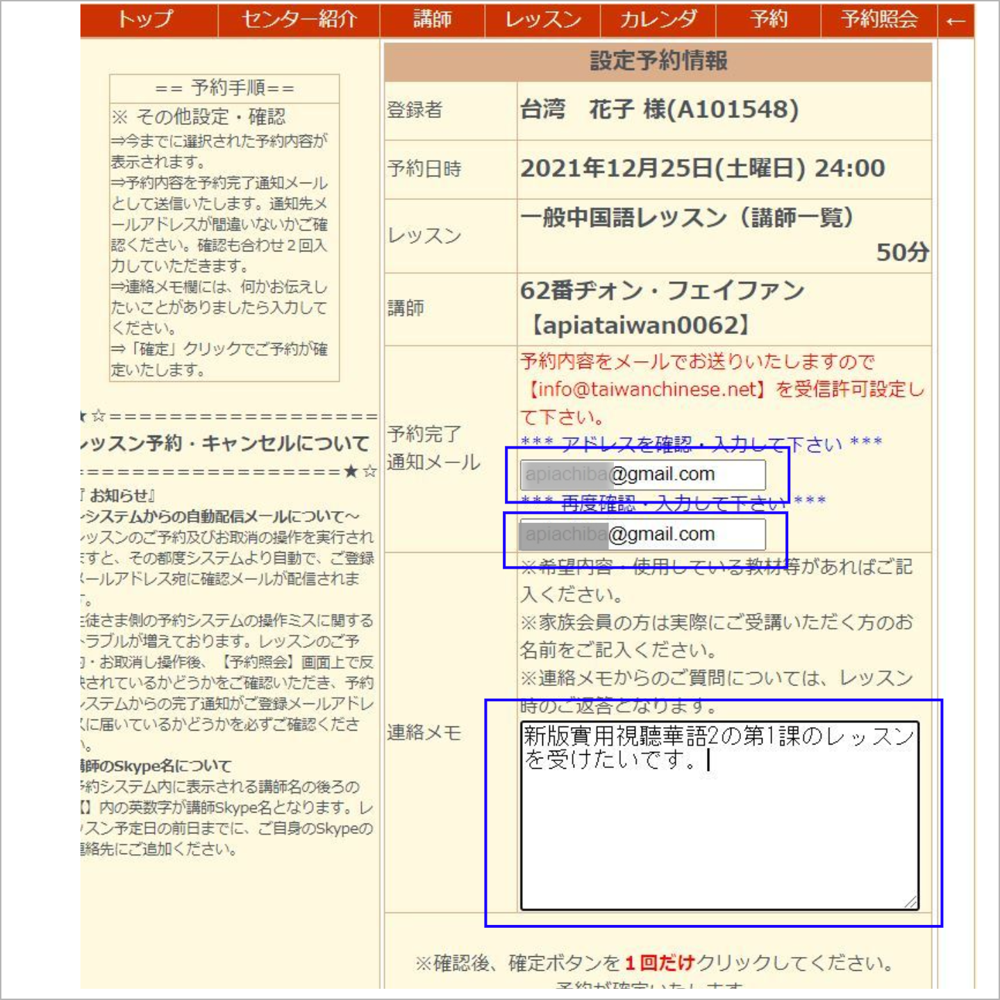 7)メールアドレスとレッスンのご希望・教材を入力する。